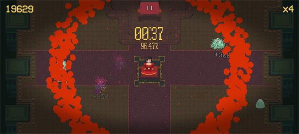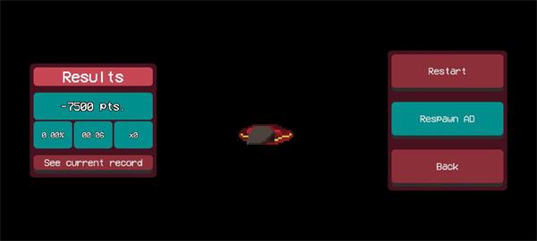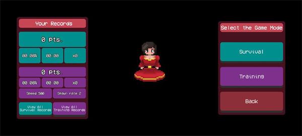 5、最后只要让怪物触碰到角色就代表闯关失败,游戏系统将会帮你进行计算游玩时间以及击中的几率。