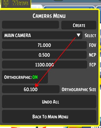 4、左右拖动ORTHOGRAPHIC SIZE栏即可修改视角方向,建议拖动至60以上