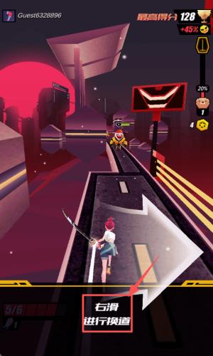 刀光与少女战斗操作与敌人击杀教程1、对局中会出现 “右滑进行换道” 的提示,通过向右滑动操作,可让角色切换到不同的赛道,调整战斗位置。