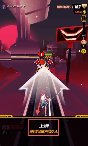 2、遇到前方敌人时,界面会提示 “上滑击杀前方敌人”,执行上滑操作后,角色会对正前方的敌人发起攻击。