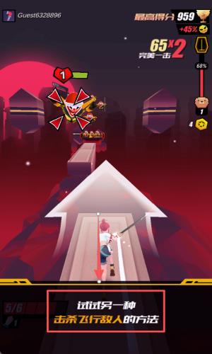 4、面对飞行类敌人,界面会提示 “试试另一种击杀飞行敌人的方法”,此时可通过对应操作完成对飞行敌人的攻击。