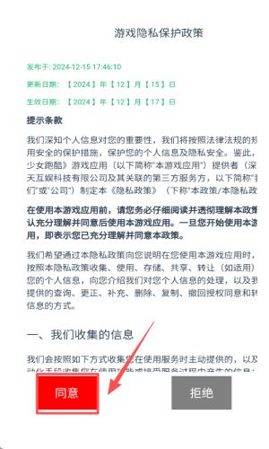 刀光与少女游戏初始设置与角色装扮教程1、进入游戏前会弹出隐私保护政策界面,需点击 “同意” 按钮,确认接受政策后才能进入游戏。