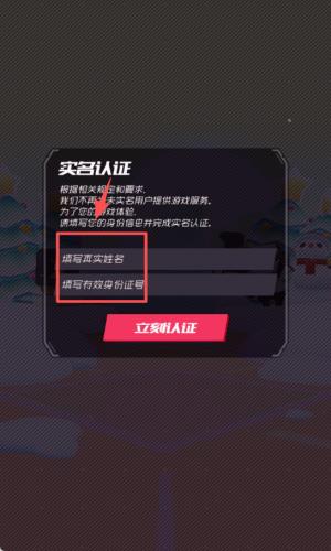 2、根据相关规定,游戏会要求完成实名认证,需填写真实姓名与有效身份证号,再点击 “立刻认证”。