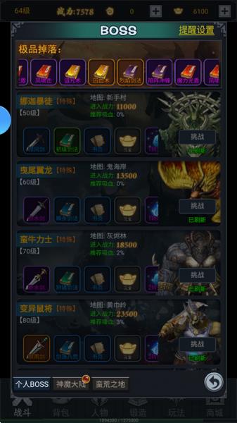 刷宝爆装:可以通过挑战转生Boss和世界Boss来获取高级装备。注意挑选合适的时间进行挑战,以获得更好的奖励。