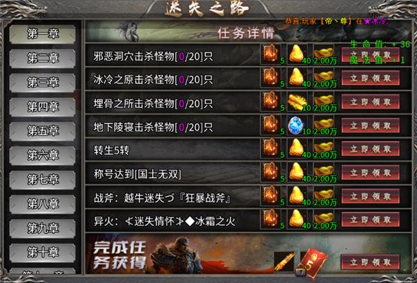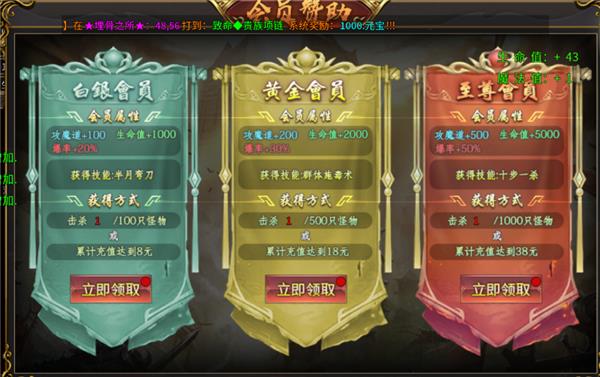 6、当击败一定数量的怪可以领取会员福利。