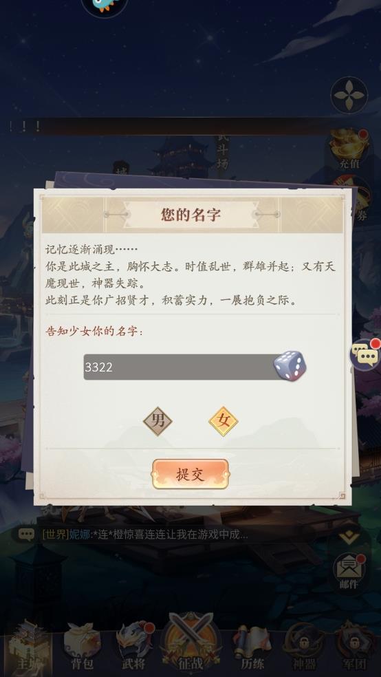2、创建角色信息(提供随机名字或简单命名)。