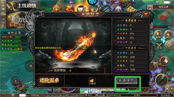 5、在狂刀锻造页面,为武器进阶,提升属性。