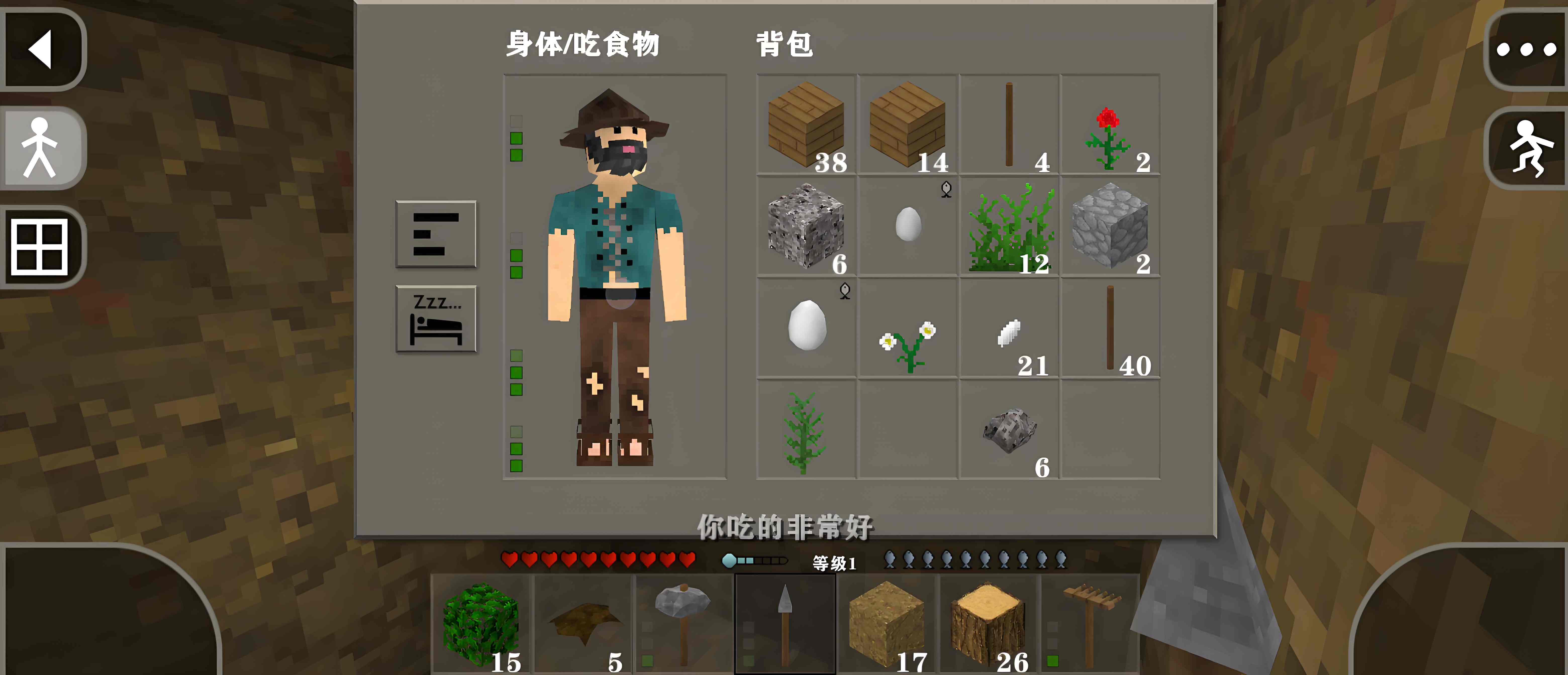 7、这样我们就可以度过安全度过第一晚了。后续,我们还将要采矿、种植和畜牧来提升等级和提高生活质量。