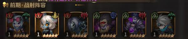 阵容策略:此队伍英雄前期容易获得,可为前期推图提供优秀的控制、持续输出、爆发输出。