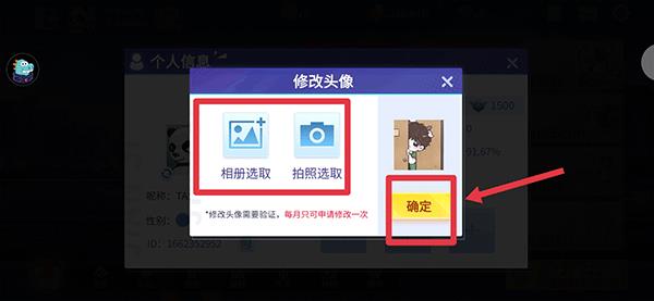 3、最后选择相册选取或拍照选取,照片选择完成后点击确定即可