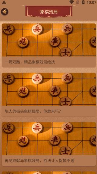 不仅如此,新中国象棋手机版还拥有大量残局,柳暗花明、猿猴摘果、霓虹贯日、马茹宫廷、火烧新野、黄龙斗宝、太白醉写、群鼠争穴、识将还将等经典的残局等你前来挑战,紧张刺激的对局,让你快速掌握象棋技巧,有兴趣的朋友快来下载体验吧。