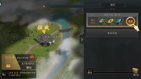 3、征战:玩家点击左下角征战,再点击右边挑战即可进入关卡