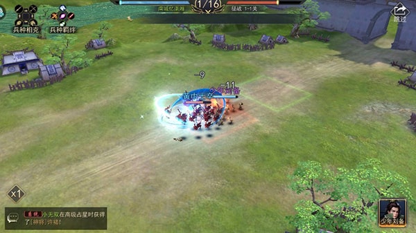 4、布阵:在开始战斗前可以进行布阵,再拥有足够多的武将时即可进行布阵,把强力武将放上,之后点击挑战即可开始战斗