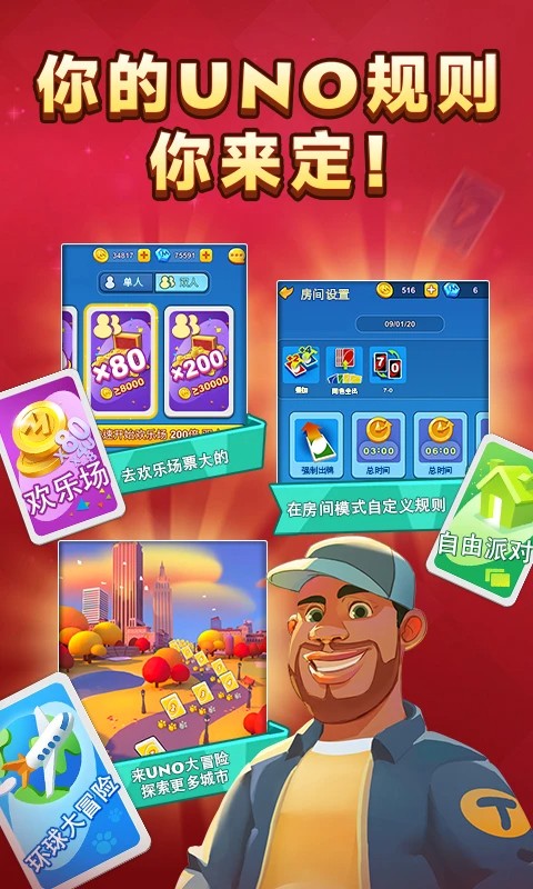 3、玩家可以与来自世界各地的玩家进行实时战斗,展示他们的Uno技能和策略,并争夺全球排名。