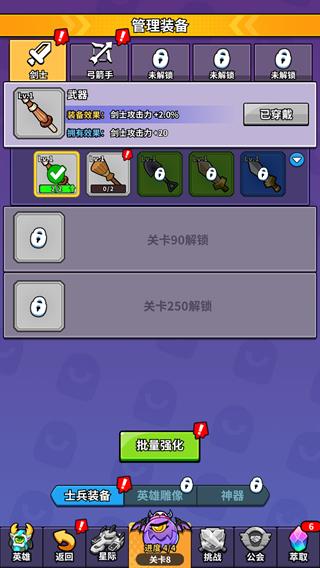 随着关卡推进,会解锁更多装备栏。及时强化和更换装备,是提升士兵和英雄战力的重要补充。