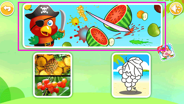 儿童益智切水果游戏新手攻略1、打开游戏,点击方框内的按钮进入;