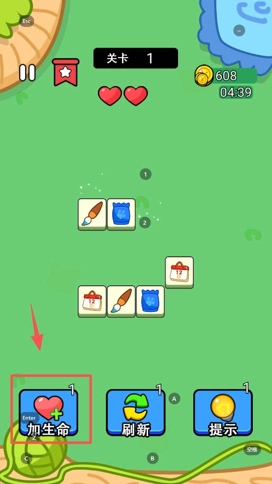 3、如果遇到困难,点击“加生命”按钮,增加生命值,继续游戏。