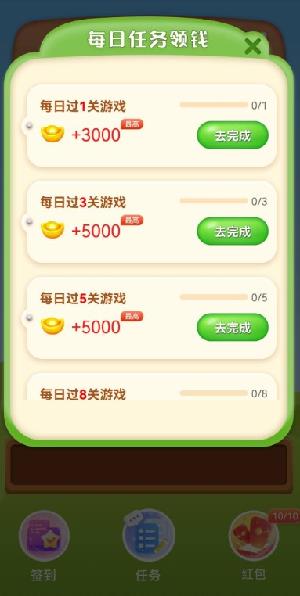 1、玩家每完成一个游戏任务,即可获得不同额度的红包奖励,既增添了游戏趣味性,又让玩家收获满满惊喜。